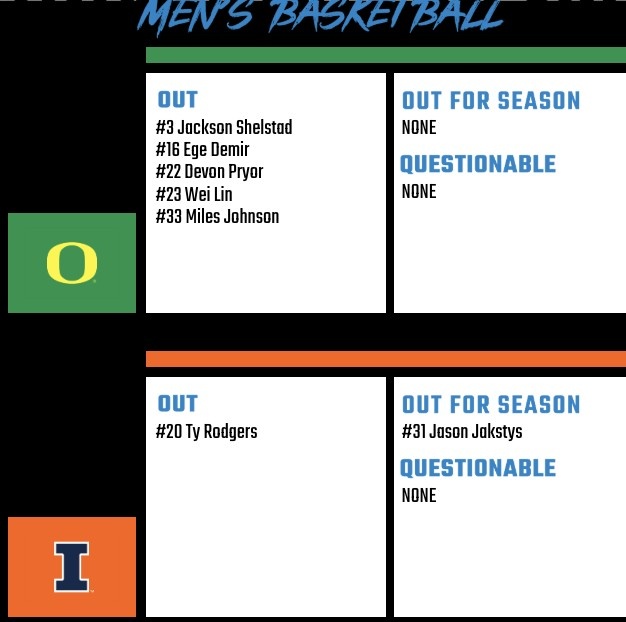 在赛前出示的伤病报告中,俄勒冈有5名球员无法出战,林葳在列。
